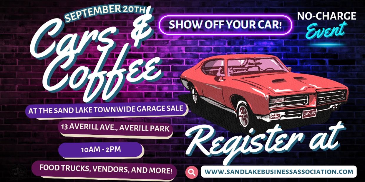 Join us for a thrilling showcase of automotive excellence at the Sand Lake Business Association's Cars and Coffee event! Whether you own a classic car, truck, or sports car, we invite you to register and display your pride and joy amidst the vibrant atmosphere of the Sand Lake Townwide Garage Sale. Taking place on September 20th from 8am to 4pm at Westfall Village, this event promises not only a stunning array of vehicles but also fantastic vendors and tempting food trucks to satisfy your cravings. Don't miss out on this perfect blend of community spirit and automotive passion! Register today and be a part of something unforgettable.